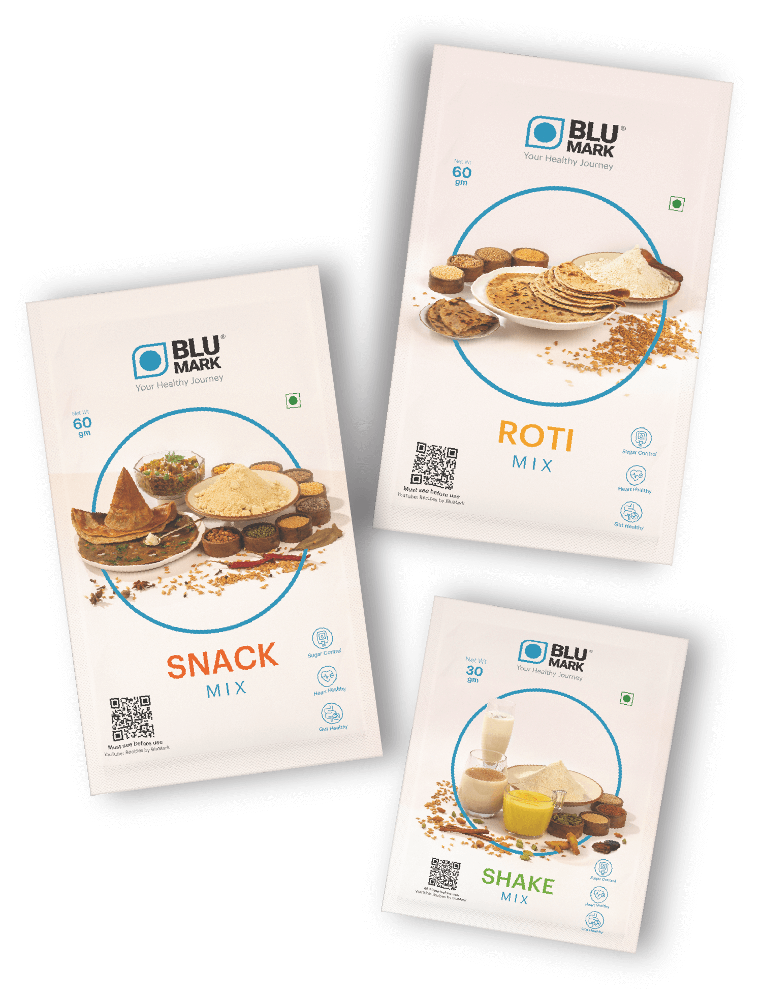 Blue is a colour given to the diabetes ring by WHO. Our vision is to make this Blu Mark™ commonly understood as a mark of proven, healthy foods.