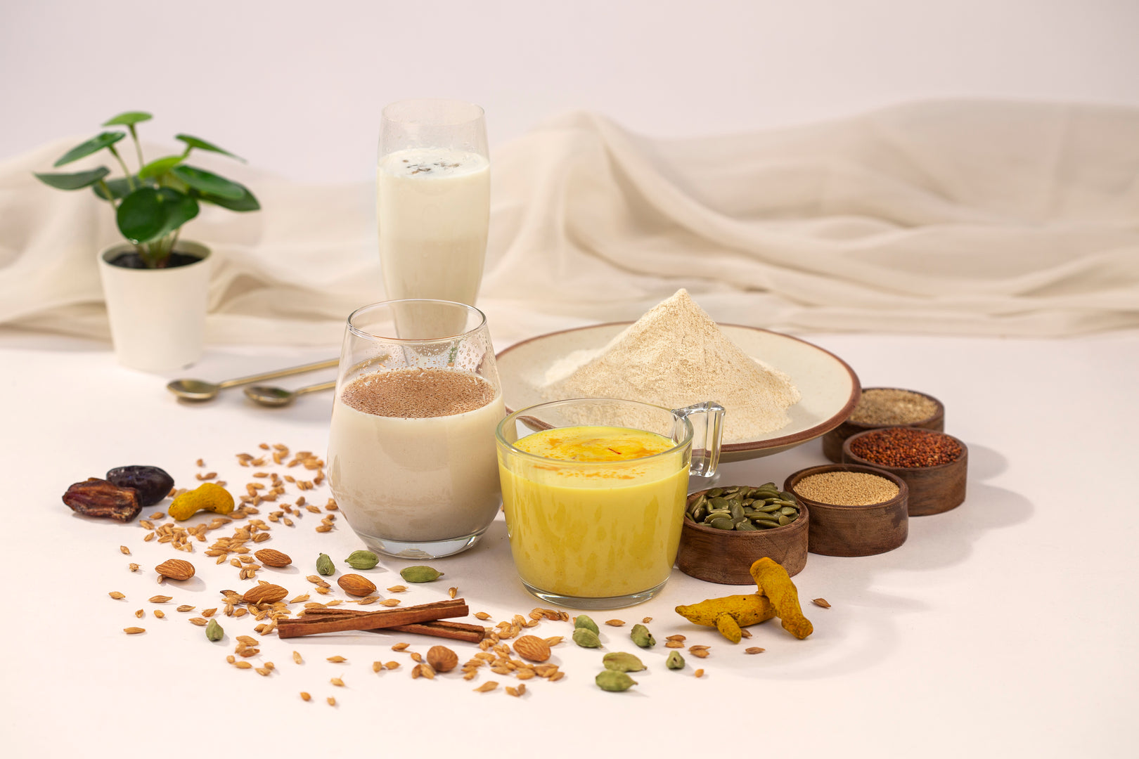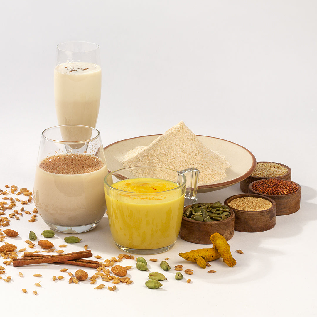 A unique innovation of superfoods like wholegrain barley & millets infused with dates, almonds, pumpkin seeds & milk solids. Blended with responsibly selected popular and healthy flavours :- Cardamom, Cinnamon, Chocolate.